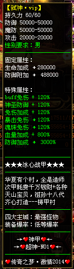 玩家可免费顶级装备。就这封号可曾记得:╱╲╳▁▂▃▄▅▆▇█〓〓〓〓☆★兄弟情深★☆〓〓〓〓█▇▆▅▄▃▂▁╳╱╲